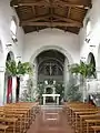 The interior contains a fresco of the Resurrection by Maso da San Friano; in the chapel of the Holy Sacrament is a Last Supper (1615) by Andrea Commodi. The church also has frescoes (1593) by Santi di Tito also with a statue of Santa Lucia. The main altar has a 15th century crucifix and the apse cupola frescoes were painted by Pier Dandini. A terracotta Madonna and Child with Angels by Andrea della Robbia is housed in the church. It also houses a baptismal font (1745), a 15th century ciborium, and a wooden pulpit (1602) whose design is attributed to Bernardo Buontalenti and sculpture to Gherardo Silvani. The church once had paintings by Cigoli.