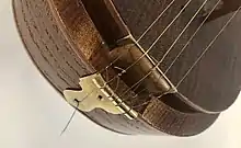The Sato is a bowed tanbur, or long-necked lute, played by performers of Central Asian classical and folk music, mainly in Uzbekistan and Tajikistan.[1] It has five strings. When plucked, the top string is pressed to the neck to produce a melody; the other four strings are drone strings.[1] Frets on the neck are made of tied string.[2] The soundboard has holes drilled in it for sound holes.[2] It is made from mulberry wood.[2]