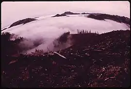 ![]() Logged hill, foreground, and peaks rising above fog in Satsop Hills | |