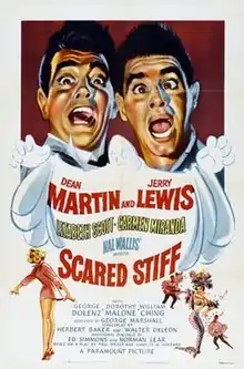 Scared Stiff is a 1953 American horror paranormal semi-musical comedy film directed by George Marshall and starring Dean Martin and Jerry Lewis. One of the 17 films made by the Martin and Lewis team, it was released on April 27, 1953 by Paramount Pictures. It is the fourth screen adaptation of the 1909 play The Ghost Breaker by Paul Dickey and Charles W. Goddard, previously filmed under that title in 1914 and 1922 and as The Ghost Breakers in 1940.