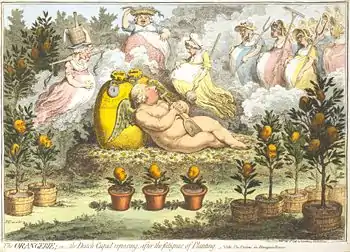 Of course these negative economic and social developments had their influence on popular opinion and caused rising political discontent with the stadtholderless regime. It may be that (as Dutch historians like L.J. Rogier have argued[42]) there had been a marked deterioration in the quality of regent government, with a noticeable increase in corruption and nepotism (though coryphaei of the stadtholderate eras like Cornelis Musch, Johan Kievit and Johan van Banchem had been symptomatic of the same endemic sickness during the heyday of the Stadtholderate), though people were more tolerant of this than nowadays. It certainly was true that the governing institutions of the Republic were perennially deadlocked, and the Republic had become notorious for its indecisiveness (though, again this might be exaggerated). Though blaming the regents for the economic malaise would be equally unjust as blaming the Chinese emperors for losing the favor of Heaven, the Dutch popular masses were equally capable of such a harsh judgment as the Chinese ones.