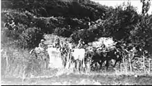 In the hills of Moab beyond the Jordan, Ottoman forces were at least two thousand stronger than British GHQ estimated.[51] Amman was held by two or three battalions, possibly the German 146th Regiment's 3/32nd, 1/58th, 1/150th Battalions.[31][52] a Composite Division, a German infantry company and an Austrian artillery battery.[52][53] To the east of the Jordan River the main Ottoman force of 5,000 held Shunet Nimrin with 1,000 defending Es Salt.[54] The Ottoman VIII Corps, Fourth Army, commanded by Ali Fuad Bey defended Shunet Nimrin, comprising the 48th Division, a Composite Division (made up of a variety of known units), a German infantry company and an Austrian artillery battery.[52][53]