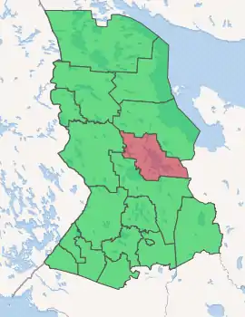 Segezhsky District (Russian: Сеге́жский райо́н; Karelian: Segežan piiri) is an administrative district (raion), one of the fifteen in the Republic of Karelia, Russia.[1] It is located in the east of the republic. The area of the district is 10,700 square kilometers (4,100 sq mi).[3] Its administrative center is the town of Segezha.[2] As of the 2010 Census, the total population of the district was 41,215, with the population of Segezha accounting for 71.9% of that number.[4]