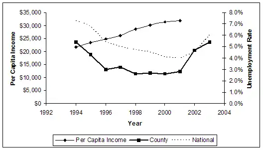 The median income for a household in the county was $49,326, and the median income for a family was $56,895. Males had a median income of $40,001 versus $28,217 for females. The per capita income for the county was $24,591. About 5.1% of families and 7.4% of the population were below the poverty line, including 8.6% of those under age 18 and 6.6% of those age 65 or over. As of March 2009, according to Workforce Central Florida, the unemployment rate for Seminole County is 9.2 percent.