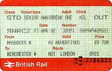 The Senior Railcard is an annual card available to people aged 60 and over, which gives discounts on certain types of railway ticket in Britain. The Railcard has existed in various forms since 1975; the current version is priced at £30.00 and is valid for one year, with a 3-year card available for £70. It is one of a wide variety of discounted and concessionary fare schemes available on Britain's railway network.