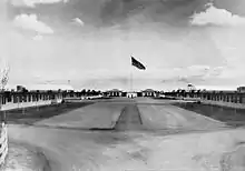 The physical facilities of Sequoia Field included administrative buildings and quarters for officers and enlisted men, encircling a central location. A consolidated mess hall, which accommodated 1,000 enlisted men and a limited number of officers, was located nearby. Adjacent to the mess hall was a post exchange, a service club and a dance floor. Recreational facilities at Camp Sequoia centered on the base swimming pool. Nearby were tennis and handball courts, and a softball diamond. Regular dances were conducted at the base service club and in Visalia.[5]