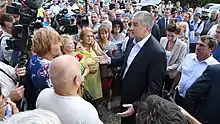 Aksyonov sued Mikhail Bakharev, Vice Speaker of the Crimean Parliament in 2010, for alleging such improprieties. Although the court of the original jurisdiction ruled for Aksyonov and demanded that Bakharev publish a retraction, the decision was overturned by an appellate court which determined that there was no evidence to disprove the allegations.[19] Andriy Senchenko, a Crimean member of Verkhovna Rada from Batkivshchyna party alleged that Aksyonov was involved in these activities together with Supreme Council Chairman, Vladimir Konstantinov.[13][20][21][22] Senchenko alleges that "there were reports that he participated in the contract killing of (Volodymyr) Tykhonchuk [in 2004], then head of Crimean State Securities Commission, and before that in the killing of head of State Property Fund (Oleksiy) Golovizin [in 1997]."[17] Aksyonov was investigated by the police for both murders, but has never been prosecuted. Senchenko believes Aksyonov managed to evade criminal responsibility due to his connections on the peninsula.[17]