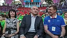 Sergey Valeryevich Aksyonov (Russian: Сергей Валерьевич Аксёнов, Ukrainian: Сергій Валерійович Аксьонов, Romanian: Serghei Valerievici Aksionov; born 26 November 1972) is the Head of the Republic of Crimea from 9 October 2014[1] which is an internationally disputed federal subject of Russia located on the Crimean Peninsula.[2] Member of the Bureau of the Supreme Council of the party United Russia.