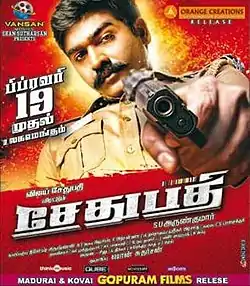 Sethupathi is a 2016 Indian Tamil-language action police drama film, written and directed by S. U. Arun Kumar. Produced by Shan Sutharsan under Vansan Movies banner, it features Vijay Sethupathi and Remya Nambeesan in the lead roles.[1][2] The film revolves around a police officer whose reputation runs into trouble when a young suspect is severely injured in his custody and threats from his enemies increase.