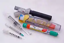 Sharps waste is a form of biomedical waste composed of used "sharps", which includes any device or object used to puncture or lacerate the skin. Sharps waste is classified as biohazardous waste and must be carefully handled. Common medical materials treated as sharps waste are hypodermic needles, disposable scalpels and blades, contaminated glass and certain plastics, and guidewires used in surgery.[1]
