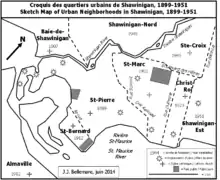 For decades, the local pulp and paper, chemical and textile industries created thousands of jobs and stimulated city growth (see Sketch Map of Urban Neighborhoods [sic] in Shawinigan, 1899-1951).