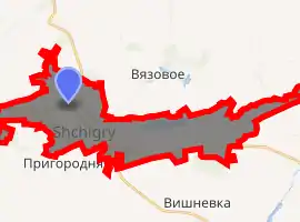 Within the framework of administrative divisions, Shchigry serves as the administrative center of Shchigrovsky District, even though it is not a part of it.[1] As an administrative division, it is incorporated separately as the town of oblast significance of Shchigry—an administrative unit with the status equal to that of the districts.[1] As a municipal division, the town of oblast significance of Shchigry is incorporated as Shchigry Urban Okrug.[4]