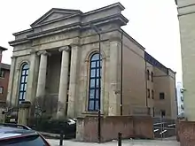 The hospital was completely rebuilt in the early 1890s and was officially opened by the Duchess of York as the Sheffield Royal Hospital on 11 May 1895.[2] A new nurses' home was completed in the late 1890s.[2] The Mount Zion chapel on Westfield Terrace, with its impressive facade in Classical Revival style with projecting portico with pediment and a pair of giant Ionic columns in antis, was acquired in 1922.[2] Once the chapel had been converted into an out-patients department, it was officially opened in its new role by the Minister of Health, Neville Chamberlain, in 1927.[2]