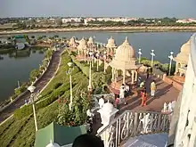 Shegaon has a tourist attraction called "Anand Sagar". The project's budget is ₹300 crore (3 billion rupees).[6][7] Anand Sagar area is developed by Shri Gajanan Maharaj Mandir Trust on about 140 hectares (350 acres) of land. it is a spiritual and entertainment centre for pilgrims, build around a Dhyan Mandir. There is a 9–11-metre-high (30–35 ft) statue of Swami Vivekananda above a meditation cell at the centre of the water reservoir. It is a replica of Vivekananda Kendra at Kanyakumari. There is an Amphitheatre which seats 3,500 people, used to organize cultural activities, functions and exhibitions.[8] The water reservoir being developed is anticipated to meet existing and proposed needs of the Sansthan.