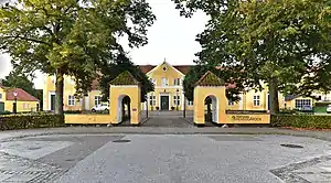 Silkeborg Hovedgård houses the main administration of the museum. Silkeborg Hovedgård was built between 1767 and 1770 by Rittmeister Hans Nicolai Hoff after he had acquired Silkeborg Castle, whose buildings had fallen into despair. From 1846, a room in the building was used as a chapel for workers at the new Silkeborg Paper Factory and later the building was used as a post office.[2]