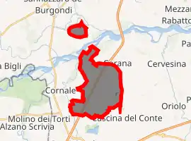 Silvano Pietra borders the following municipalities: Bastida de' Dossi, Casei Gerola, Corana, Mezzana Bigli, Sannazzaro de' Burgondi, Voghera.