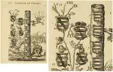 Today Petra Sancta is known primarily as the inventor of the modern hatching method in heraldry published in 1638.[2] However, his hatching system is identical with that of de la Colombière from 1639.[3] For this reason, de la Colombière accused Silvester Petra Sancta of copying his method and incorrectly publishing it in his 1638 work, one year before the same hatching system was published by de la Colombière.