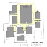 Located vertically above the Unirea mine and separated from it by a 40m thick floor, the Mihai level was opened in 1912 and consists of 6 trapezoidal shaped rooms with a 12 m ceiling width, 37 m floor width, 66 m height and a wall inclination angle of 60 degrees.