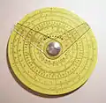 Proportion wheels are simple circular slide rules used in graphic design to calculate aspect ratios. Lining up the original and desired size values on the inner and outer wheels will display their ratio as a percentage in a small window. They are not as common since the advent of computerized layout, but are still made and used.