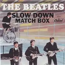 "Slow Down" was performed by the Beatles during their early career. In 1964, they recorded a version and Parlophone released it on the Long Tall Sally EP in June in the UK. In July, the song was included on the American album Something New. Capitol Records released it as a single, with "Matchbox" (also from the Long Tall Sally EP) as the A-side.[4] "Slow Down" reached number 25 on the Billboard Hot 100. The song is also included on the 1988 Past Masters compilation. A performance specifically recorded for broadcast by the BBC is found on the album Live at the BBC (1994).