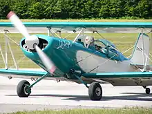 The Miniplane is a conventional single-bay biplane with staggered wings of unequal span braced with N-struts and wires.[1][7] The Miniplane design has fixed undercarriage with a steerable tailwheel[7] and although designed with an open cockpit,[1][4][7] many have been fitted with canopies. The fuselage and the tail fin are of a conventional truss design constructed of welded steel tube and covered in fabric,[1][2][7][8] and the wing spars and ribs are made from spruce and also fabric-covered.[1][2][7][8] A variant has been built with an all-metal wing construction.[9]
