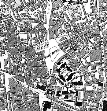 - Renamed in 1889 to avoid confusion with the Smithfield in Tower Hamlets, nowadays called East Smithfield.