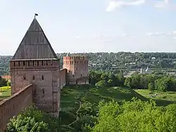 Smolensk Kremlin (Russian: Смоленский кремль) is a kremlin (fortification) enclosing the center of the city of Smolensk in western Russia. The partially preserved fortress wall was built between 1595 and 1602, during the reign of Tsars Fyodor I Ioannovich and Boris Godunov. The length of the walls is about 6.5 kilometres (4.0 mi), of which less than the half was preserved. The fortifications were built under the supervision of the architect Fyodor Kon. The Smolensk Kremlin is classified as an architectural monument protected at the federal level,[1] and also has a great historical significance, in particular, as the fortress protecting the Russian state from the west over centuries.