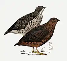 The Snow Mountain quail (Anurophasis monorthonyx), is a large, approximately 28 cm (11 in) long, dark brown quail of Alpine grasslands. It is the only member of the genus Anurophasis. It has a brown plumage, a horn-coloured bill, yellow legs and a brown iris. The underparts of the female are whitish and more heavily black barred than in the male.