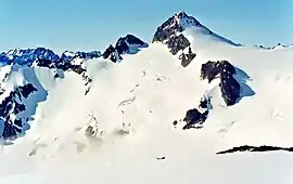Snowfield Peak (8,351 feet (2,545 m)) is in North Cascades National Park in the U.S. state of Washington.[3] Located in the south unit of the park, Snowfield Peak is .70 mi (1.13 km) east of the summit known as Horsemans Pack and the Neve Glacier descends from the north slopes of the mountain.