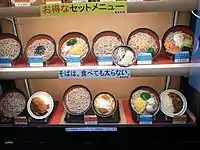 Moreover, they are a popular inexpensive fast food at railway stations.[1] Mainly, busy salarymen use the service.