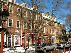 Society Hill is a historic neighborhood in Center City Philadelphia, Pennsylvania with a population of 6,215 as of the 2010 United States Census.[7] Settled in the early 1680s, Society Hill is one of the oldest residential neighborhoods in Philadelphia.[8] After urban decay developed between the late 19th and early 20th centuries, an urban renewal program began in the 1950s, restoring the area and its many historic buildings.[9] Society Hill has since become one of the most expensive neighborhoods with the highest average income and second highest real estate values in Philadelphia.[10] Society Hill's historic colonial architecture, along with intelligent planning and restoration efforts, led the American Planning Association to designate it, in 2008, as one of the great American neighborhoods and a good example of sustainable urban living.[11]