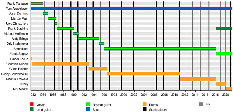 | Past members | Frank Testegen Josef Dominic Michael "Destructor" Wulf Uwe Christophers Uwe Baltrusch Michael Hoffmann Andy Brings Dirk "Strahli" Strahlmeier Christian "Witchhunter" Dudek Atomic Steif Bobby Schottkowski Bernd "Bernemann" Kost Markus "Makka" Freiwald Stefan "Husky" Hüskens |
