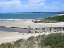 At certain times of the year these beaches can be covered with dried seaweed from the extensive marine vegetation under the waters of Western Port, however when the seaweed is not in season, all of Somers beaches boast clean sand. The South Beach has an intricate system of rock pools, this is both of great interest to beachcombers, and something of a curse, as the beach is a difficult place to swim. The Merricks Creek Inlet is a tidal creek that flows with the tides of Western Port. About 50 cm below the surface of the sandbed of the creek lies a darker sand that gives off a hydrogen sulphide smell when disturbed. Sand all these beaches is generally fine grain mixed with crushed sea shells. Small reefs exist in a few places and can be seen at low tide, but these are only rocky reefs incapable of supporting coral. At low tide these reefs can make navigation near the beach difficult for watercraft and are clearly marked with buoys. A succession of big storm tides came in on 24 March, 25 March, 22 April, 23 April and 15 June 2011, severely eroding the sand dunes east the Merricks Creek. In 2012, the wooden wall that had fixed that path of the Merricks Creek since 1974, was taken down, as it was deemed unsafe and not adequately performing its job anymore. Starting in July 2012 and finishing in September 2012, a new rock wall was built, to fix the creek on a path straight into Westernport. For the three and a half years the wall has been in place, a noticeable buildup of sand has occurred east of the wall, while considerable erosion has occurred west of the wall. In November 2015, the entrance to the Merricks Creek was filled in with a sand groyne, as a short-term solution to the constant hydrogen sulphide odour caused by the breakdown of sea grasses within the creek. As of June 2016, the sand groyne is still in place, and as such the surrounding beaches have benefitted with the buildup of sand.