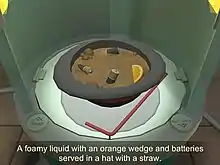 The player character is instructed to turn on a teleportation machine. After completing a small mini-game in which the player must line up a small white dot with a line on a monitor, the main part of the game is unlocked. From a machine, bowls of "candidates for soup" are dropped down, and the player has the choice of deciding whether or not it is soup by pressing one button or another. If the player presses the "Soup" button to accept the item as soup, it is teleported away. If the player chooses the "Not Soup" button, it is dumped. After judging several bowls of soup, the player will be met with a screen that shows, based on data from the game, what the qualifiers for what makes something soup are in their opinion.