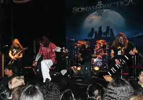 Sonata Arctica is a Finnish power metal band from the town of Kemi, Finland. Created as a hard rock band named Tricky Beans, they later changed to Tricky Means and finally to Sonata Arctica, when they shifted to power metal.[1] The current line-up consists of singer, keyboardist and songwriter Tony Kakko, guitarist Elias Viljanen, bass guitarist Pasi Kauppinen, keyboardist and keytarist Henrik Klingenberg, and drummer Tommy Portimo. All the musicians of the band's history except Portimo also acted as backing vocalists.