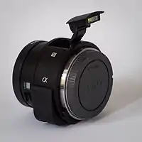 The Sony ILCE-QX1[1][2] is a mobile device mountable, Wi-Fi-controlled, lens-type compact camera manufactured by Sony and was announced on 3 September 2014. Part of the Sony α family, it is one of Sony's "Smart Lens" cameras, alongside the QX10, QX30 and QX100, that are designed to be specifically used with a smartphone. It has a 20.1 megapixel APS-C-size sensor, uses an interchangeable E-mount lens as its highlight feature, supports power zoom but no in-body image stabilization, and has a pop-up flash unlike its other QX siblings.[3]