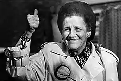 Masloff served out the remainder of Caliguiri's term, and was unopposed in a bid for a full term in November 1989. She was the first woman and the first Jew to hold the post.[9] She once referred to the rock band The Who as "The How,"[10] among many other rehearsed malapropisms.[11]