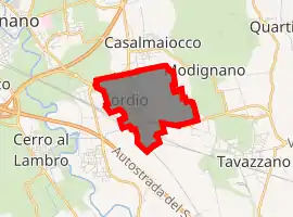 Sordio (Lodigiano: Sördi) is a comune (municipality) in the Province of Lodi in the Italian region Lombardy, located about 20 kilometres (12 mi) southeast of Milan and about 12 kilometres (7 mi) northwest of Lodi.
