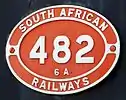 In July 1956 at 60 years of age, Class 6A Belpaire no. 482 was still in service at Port Elizabeth and at times still worked the mainline on work trains or pickup work. When she was eventually retired, she was plinthed inside the main entrance to the electric locomotive shops at Koedoespoort in Pretoria.[7]