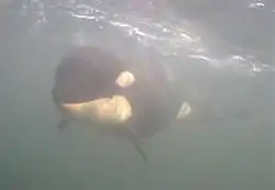 Springer has been observed with her pod in Johnstone Strait every year since her rescue and translocation, becoming the only cetacean in history to be successfully reintegrated into a wild population after human intervention.[2][3] In July 2013, 11 years after her rescue, Springer was seen off the central British Columbia coast with a new calf and is considered to be a contributing member of that population.[4] In 2017 Springer was seen with another calf, who was confirmed to be her second offspring.[5]