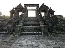 Another theory suggests that Dapunta Hyang came from the east coast of the Malay Peninsula, and that the Chaiya District in Surat Thani Province, Thailand, was the centre of Srivijaya.[29] The Srivijayan Period is referred to as the time when Srivijaya ruled over present-day southern Thailand. In the region of Chaiya, there is clear evidence of Srivijayan influence seen in artwork inspired by Mahayana Buddhism. Because of the large amount of remains, such as the Ligor stele, found in this region, some scholars attempted to prove Chaiya as the capital rather than Palembang.[30] This period was also a time for art. The Buddhist art of the Srivijayan Kingdom was believed to have borrowed from Indian styles like that of the Dvaravati school of art.[31] The city of Chaiya's name may be derived from the Malay name "Cahaya" which means "light" or "radiance". However, some scholars believe that Chaiya probably comes from Srivijaya. It was a regional capital in the Srivijaya empire. Some Thai historians argue it was the capital of Srivijaya itself,[32] but this is generally discounted.