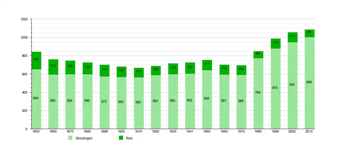 Stüsslingen has a population (as of December 2019) of 1,196.[9] As of 2008, 4.6% of the population are resident foreign nationals.[10] Over the last 10 years (1999–2009 ) the population has changed at a rate of 2.6%.[11]