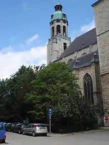 Construction of the church commenced in the 16th century by Augustine friars who had built a convent with a chapel at the same location in 1513. Johannes van Mechelen of Osbach initiated 1508 the foundation of the monastery. The Augustinians decided to build a church there in 1514 but when they were accused of Lutheran sympathies the grounds were taken from them. In 1527 the site was parceled to finance the building of the church.[1] The former convent chapel was expanded and then consecrated as a parish church in 1529.[2] The church was later expanded with a tower in the west and a transept.[1]