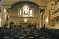 President James Madison established the tradition of a "president's pew," selecting pew 28 for his private use in 1816.[4] The church was supported by pew subscriptions during its early history; although the vestry offered a pew to President Madison for free, he insisted on paying the rent.[7] During a renovation in 1843, the pews were renumbered, and the president's pew became pew 58.[4] President John Tyler asked that pew 58 be assigned to him, and paid for its use in perpetuity by presidents of the United States.[4] Additional renovations in 1883 renumbered the seat to pew 54, and this pew has remained reserved for the president's use when in attendance.[4] Although the "president's pew" is open for the use of any U.S. president who wishes to worship at the church, during weddings and other events the president usually sits in the front pew as a matter of protocol.[4]