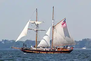 | Sail plan: | 2,500 square feet, 11 sails in a brigantine rig |