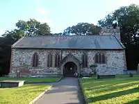 The church is constructed of limestone rubble with sandstone dressings and slate roofs.[2] It has a double nave, a South chamber and a four-storey tower.[2] The architectural historian Edward Hubbard notes the style as Perpendicular, with the possible exception of the tower door.[3]