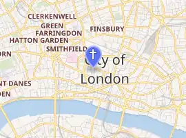 The church was destroyed in the Great Fire of London,[6] and after some pressure[7] it was rebuilt by Sir Christopher Wren in 1673.[8] The organ was built by Thomas Elliot in 1800: the most noted organist was Dr Henry Hiles.[9]