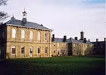 In 1884 permission was granted to extend the hospital, and the East and West Pavilions were completed in 1887. These allowed an additional 80 patients to be admitted.[7] The asylum steadily grew, with more buildings were erected. During the First World War the patients were evacuated and the hospital became Northumberland No. 1 War Hospital for wounded soldiers, who were brought there by train. The facility reverted to serving as an asylum again in 1921.[8] In 1948 the National Health Service took over the hospital and changed the name to St Nicholas Hospital.[5] A new admissions unit called the Collingwood Clinic was opened in 1956.[9]