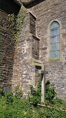 Between 1111 and 1117[68] the ancient clas church was granted by Gilbert fitz Richard to St Peter's Abbey, Gloucester (a Benedictine house),[69] as a cell or priory of St Peter's Abbey. This may have meant the construction of a stone church, perhaps the first on the site; a new tower and porch were built.[70] It is not clear whether the Celtic monks and priests (married and single) were expelled, or whether they were joined by brethren of a new sort.[71] A few years later, in 1141, Ewenny Priory, in the Vale of Glamorgan, was founded as a priory of St Peter's Abbey, Gloucester. As with Llanbadarn, there was a pre-existing church, in this case definitely one in stone, and probably dating from the 1120s, as it was consecrated 1126 by Bishop Urban of Llandaff.