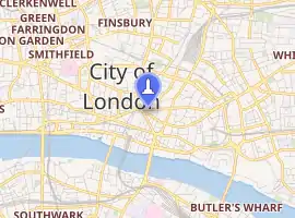 The statue of James Henry Greathead, designed by James Butler, is installed outside the Royal Exchange, where it conceals a ventilation shaft. It was erected in 1994 on a traffic island in the middle of Cornhill, London, with traffic passing to either side, similar to the statue of Prince Albert at Holborn Circus.[1] The London Troops War Memorial is nearby.